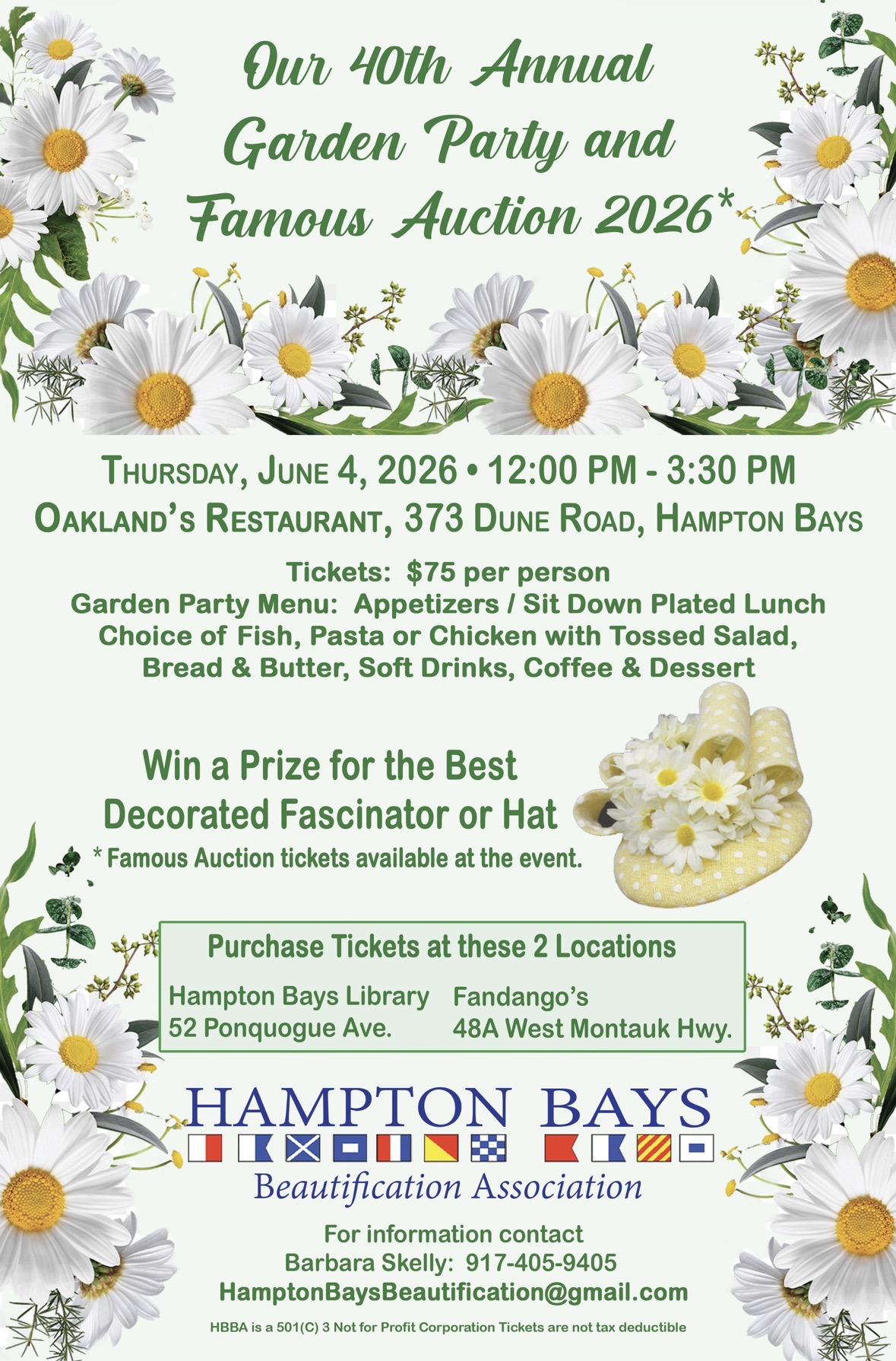 JOIN HBBA AT OAKLAND’S RESTAURANT FOR A FUN DAY HBBA 40 Annual Garden Party and  Famous Auction THURSDAY June 4, 2026 from 12 noon – 3:30 PM TICKET INCLUDES PASSED APPETIZERS,Sit Down Plated  LUNCH, COFFEE[...]